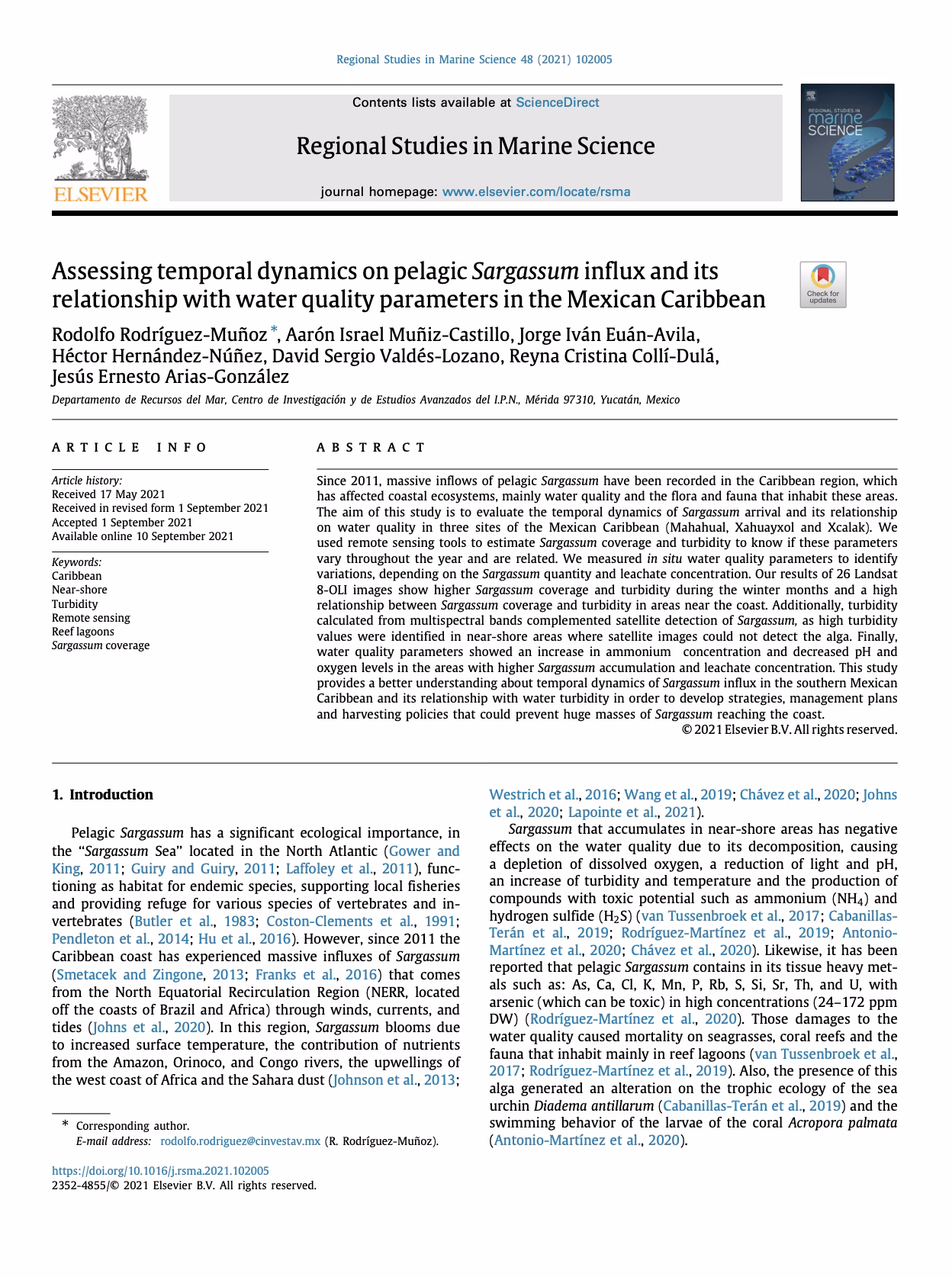 Assessing temporal dynamics on pelagic Sargassum influx and its relationship with water quality parameters in the Mexican Caribbean